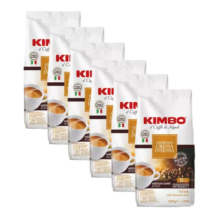 Stock up with this fantastic promotion which includes 6 packs of 1 kg of Kimbo Crema Intensa coffee beans at a special price.