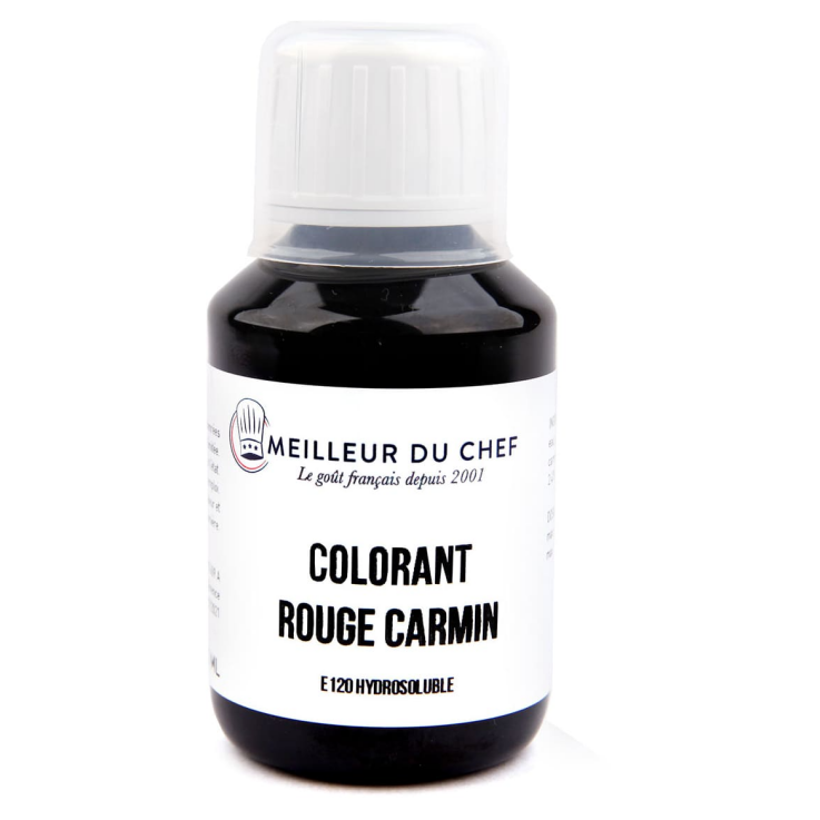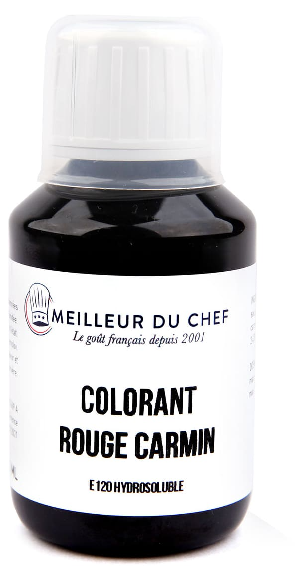 - Ingrédients : eau, propylène glycol, colorant carmin E120