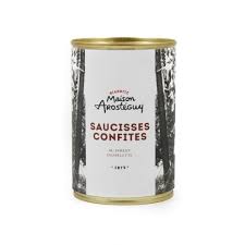The Basque people have long used the confit method of preservation. These pork sausages are made with locally sourced pork, then slowly cooked in pork and duck fat until they’re meltingly tender. The sausages are then tinned with the fat to preserve them.