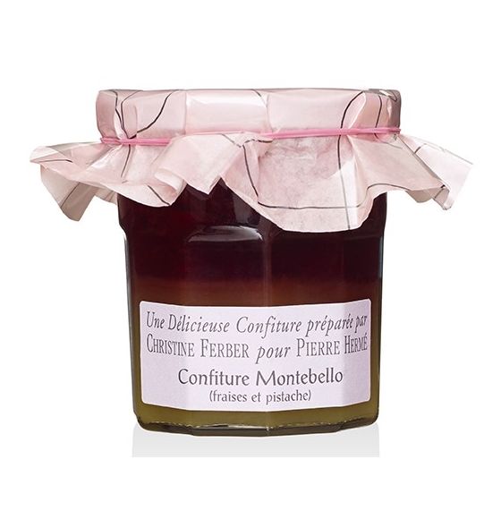 La saveur de la fraise prolonge celle de la pistache, apportant sa note d’acidité. Confiture préparée en Alsace par Christine Ferber uniquement à partir de fruits frais sur une recette exclusive de Pierre Hermé.