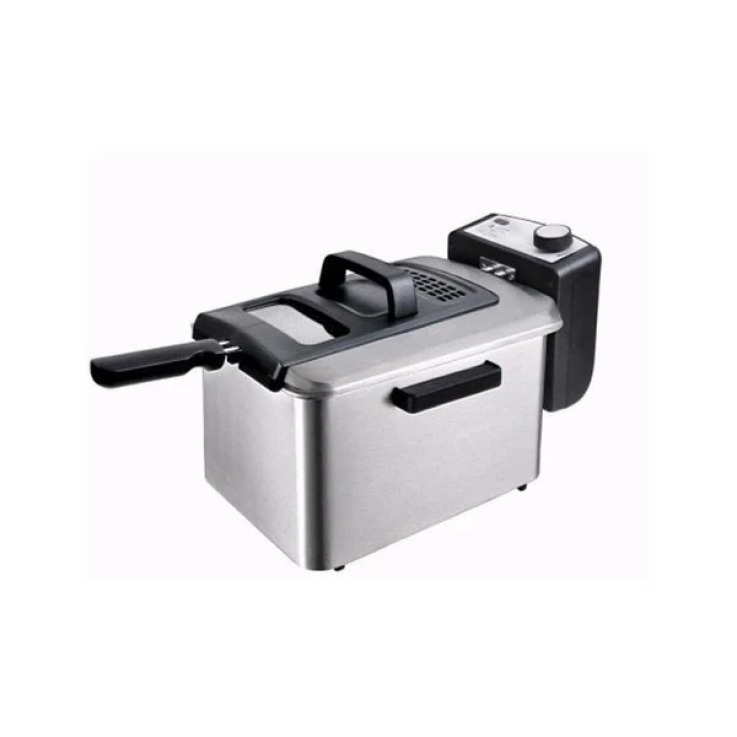 Friteuse 4 Litres – 2000W – Commandes mécaniques – Thermostat réglable – Permet de frire les aliments – Couvercle avec hublot de contrôle et filtre anti-odeurs – Témoins lumineux du fonctionnement – Pieds antidérapants et poignée thermo isolée – Protection contre la surchauffe – Température ajustable de 130°C a 190°C