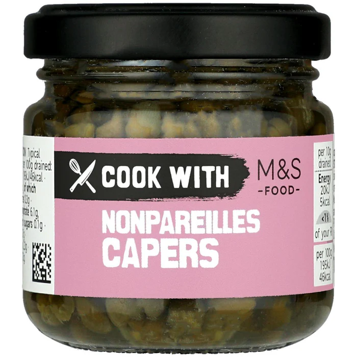 Cook With M&S Nonpareilles Capers. Soaked in brine and white wine vinegar, these capers can be used in pizzas and salads. Suitable for vegans. Our Cook with M&S range includes 100s of time-saving ingredients that make cooking dinner easy.