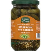 Cornichons extra fins vinaigre doux aux 3 herbes