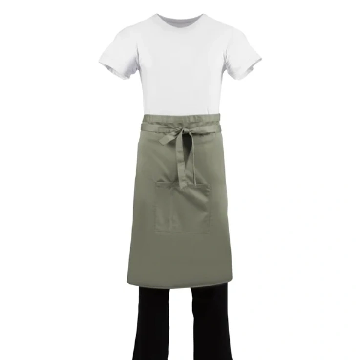 Tablier en polyester-coton olive de qualité professionnelle de la marque leader Whites. Complète parfaitement tout uniforme. Matériau résistant et léger, pour une utilisation en salle. Ceinture en tissue pour ajuster le tablier. Lavable en machine.
