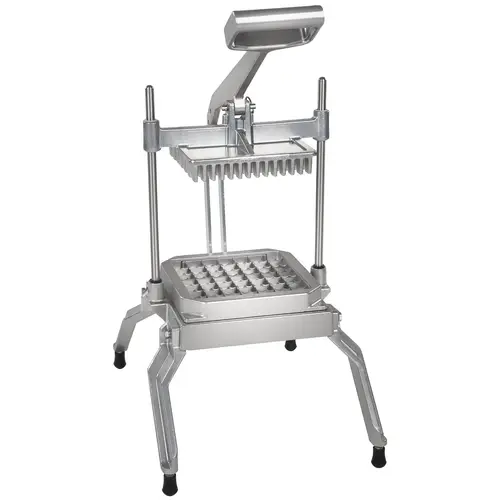 Le Coupe fruits et légumes RCGT-2 de Royal Catering a été conçu tant pour un usage privé que professionnel. C’est un appareil fonctionnel pouvant être utilisé dans des cuisines industrielles, cantines ou restaurants permettant de réaliser des découpes en dés de mêmes dimensions pour fruits et légumes. Non seulement le Coupe fruits et légumes RCGT-2 est entièrement composé d’inox, mais il est en plus extrêmement résistant, d’un rendement incroyable et peut être nettoyé simplement à l’eau claire. En raison de sa structure verticale, cet appareil ergonomique est particuliérement robuste et économe en place. Pour entreprendre la découpe en dés de fruits ou légumes, placez d’abord l’aliment à découper sur le support prévu à cet effet puis glissez-le littéralement à travers les lames finement aiguisées grâce au méchanisme à levier. Les pieds antidérapants vous assurent une stabilité idéale.
