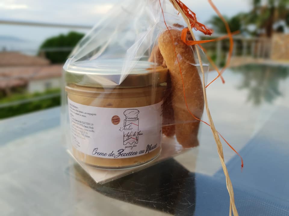 Crème dessert à base de zézettes de Sète accompagnée de ses zézettes.