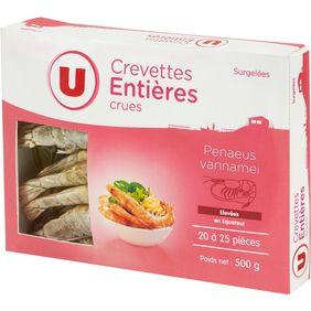 Crevettes entières crues élevées en Equateur U, 20/25 pièces, 500g