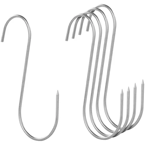 Le set de 5 crochets de fumage par Royal Catering a été conçu pour suspendre et fumer la viande. La forme en double crochet garantit un maintien parfait et permet de plus d’économiser de la place à l’intérieur du fumoir. Les crochets sont idéaux pour suspendre la saucisse, le poisson, le poulet, les cerfs et tout autre gibier. Les crochets vous dispensent d’avoir à retourner la viande régulièrement. La viande est en effet suspendue et directement cuite par les fumées aromatiques qui l’entourent et lui font prendre toute sa saveur. Cette méthode de cuisson évite en outre que la viande ne colle aux grilles de cuisson. Avec la cuisson par fumage, vous n’avez également plus besoin d’ouvrir le four avec le risque de dissiper la chaleur et les arômes durant la cuisson. Les crochets de suspension sont livrés par pack de 5 pièces. Ils sont capables de supporter une charge maximale de 5 kilos chacun et sont composés d’acier très résistant. Les crochets peuvent enfin être facilement nettoyés en machine après utilisation. Équipez sans plus attendre votre fumoir des crochets extrêmement qualitatifs produits par Royal Catering!