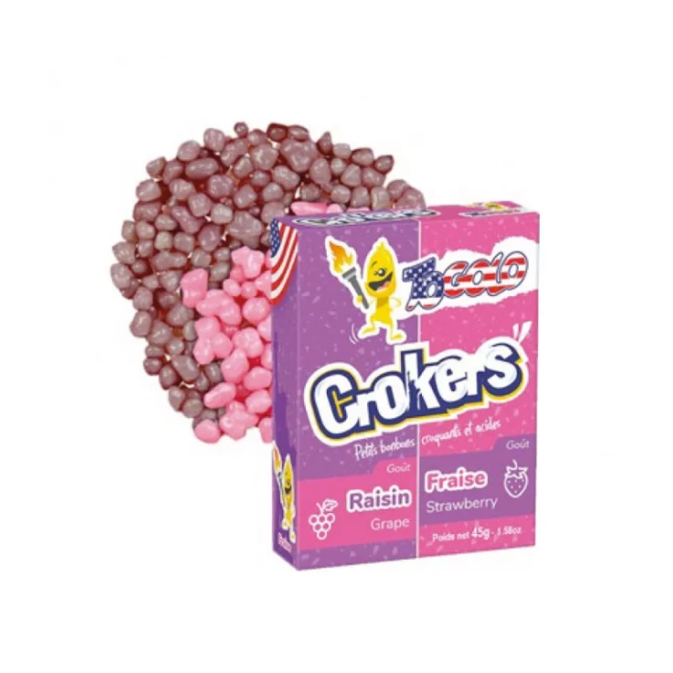 TOGOLO & US – Délicieux Bonbons Croquants acidulés en Granules dans une boîte individuelle (45 gr) – Double parfum : raisin et fraise séparé – Vendu en gros conditionnement dans une boîte de présentation de 16 boîtes