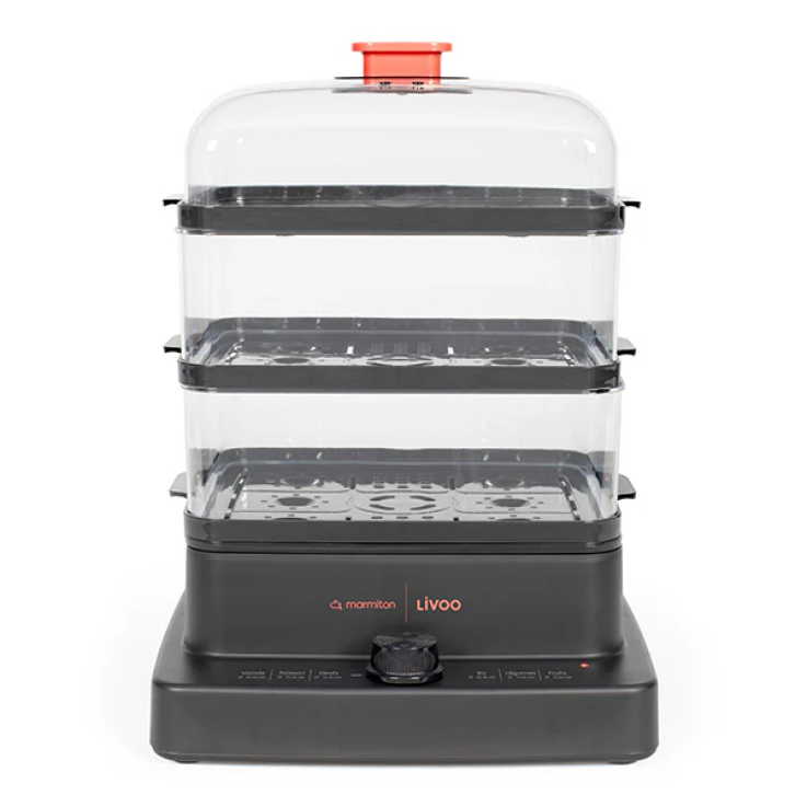 Le cuiseur vapeur Livoo est conçu pour votre commodité avec un arrêt automatique à la fin de la minuterie, un indicateur de niveau d’eau pour une utilisation pratique, et des plateaux et paniers compatibles au lave-vaisselle pour un nettoyage facile.