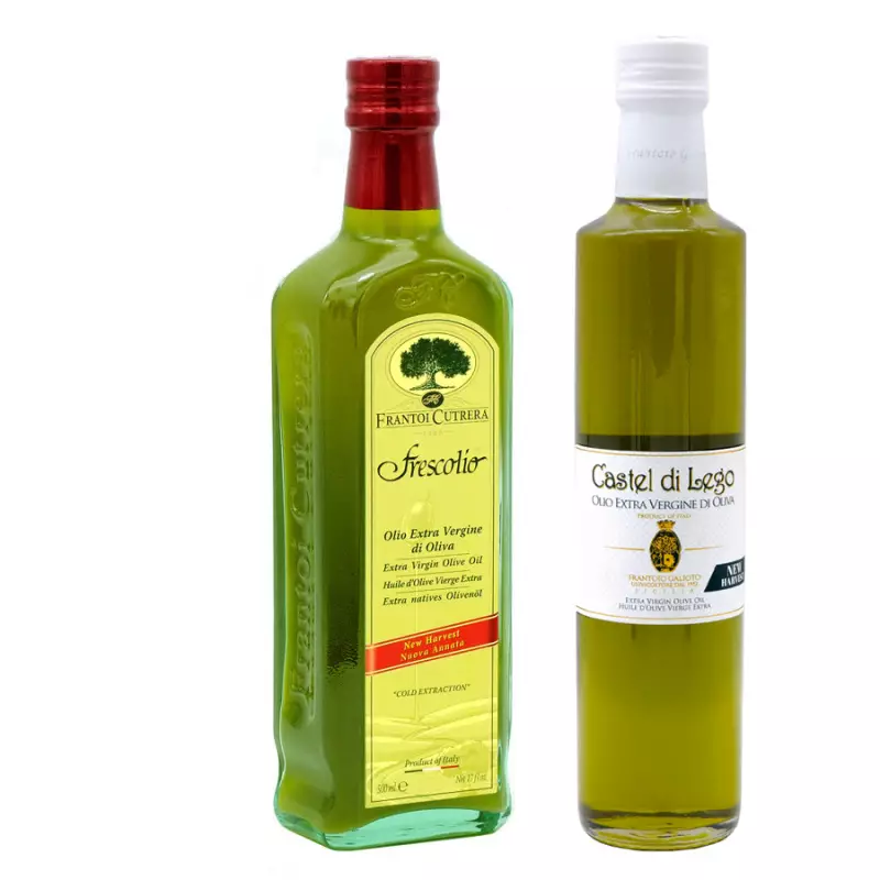 Try two of the finest Italian Novello extra virgin olive oils, produced by Frantoi Cutrera and Frantoio Galioto.