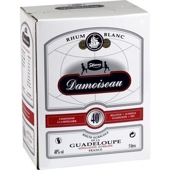 DAMOISEAU ; Rhum blanc agricole de la Guadeloupe 40% 5 l