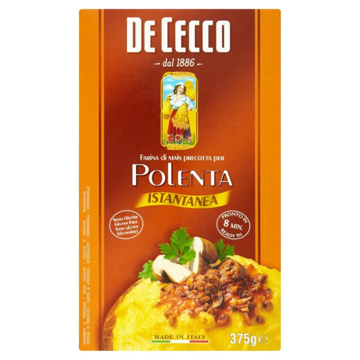 Polenta is a typical, traditional dish from northern Italy which lends itself well to condiments of any kind, such as meat sauces, melted cheese, mushrooms and vegetables. De Cecco Polenta Istantanea is made from the best quality ingredients and the use of cutting-edge technology to guarantee the quality that sets the De Cecco brand apart. Ready in 8 minutes. Gluten Free.