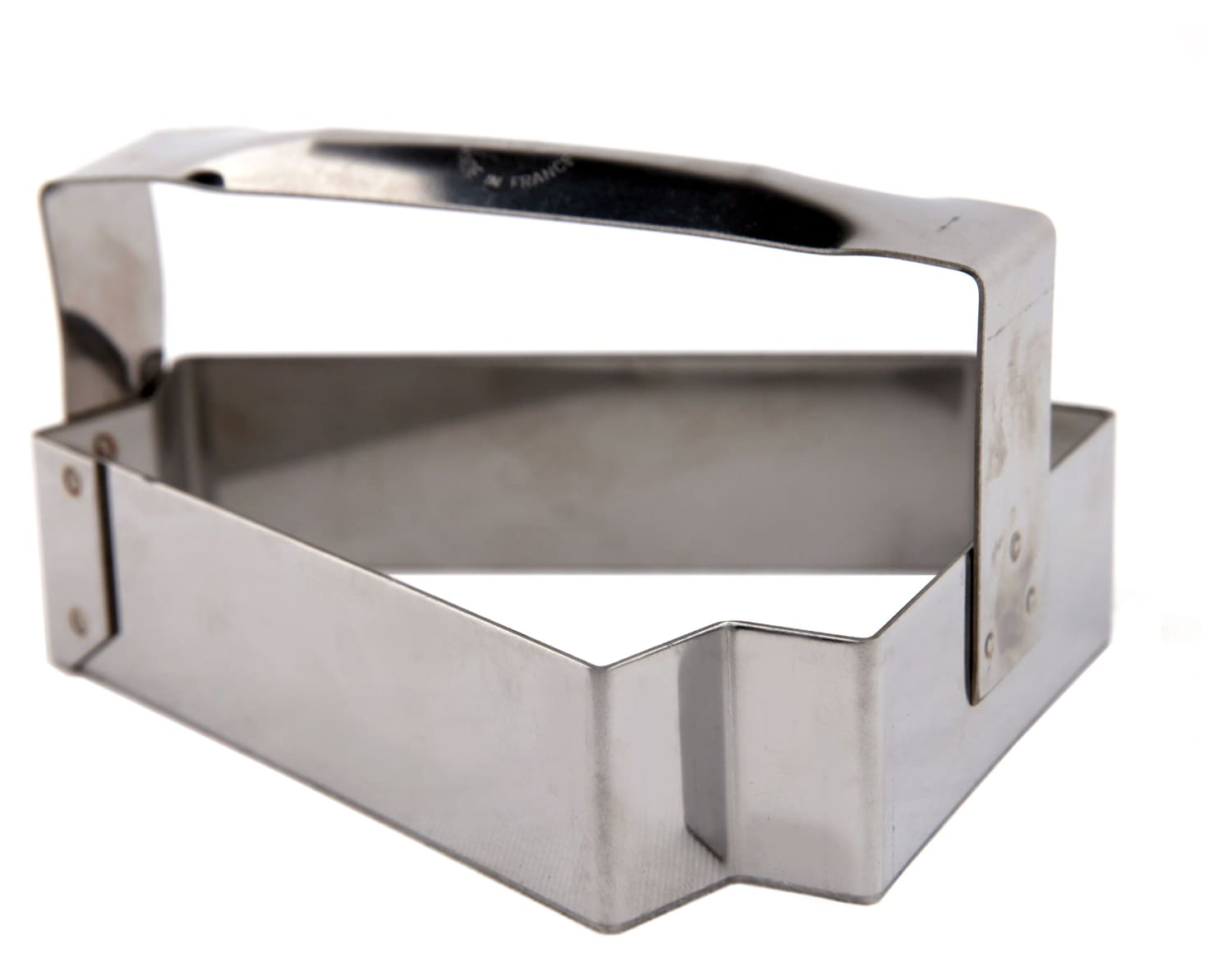 Découpoir avec ceinture de renfort pour la découpe nette de fonds de tarte rectangulaires Mozaïk sans surplus de pâte dans les angles. A utiliser avec le rectangle à tartelettes.