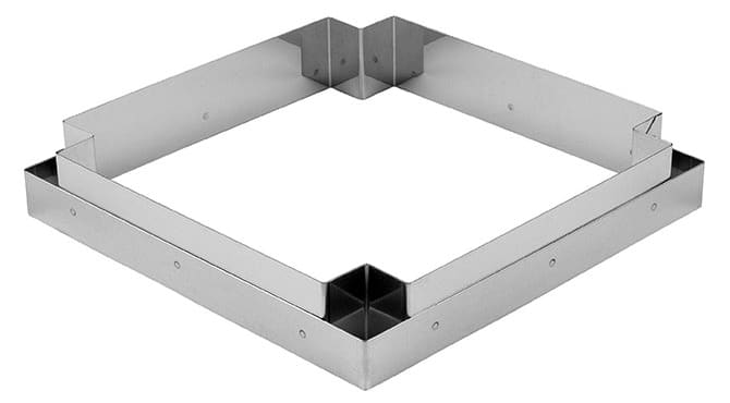 Ces carrés et leur découpoir adaptés permettent de réaliser facilement des fonds de tartelettes et tarte carrées aux contours nets, sans surplus de pâte dans les angles.
