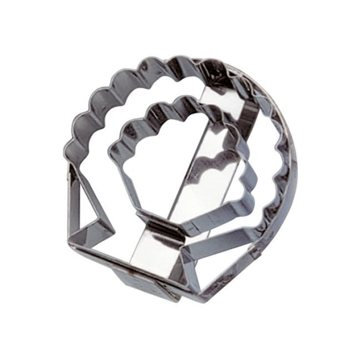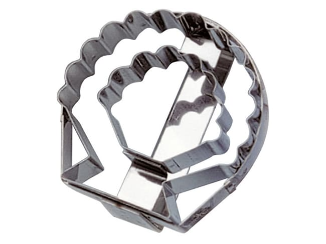 Découpoir Saint-Jacques double pour bouchées, à poignée, en acier inoxydable 18/10 cannelé, tranchant biseauté.
