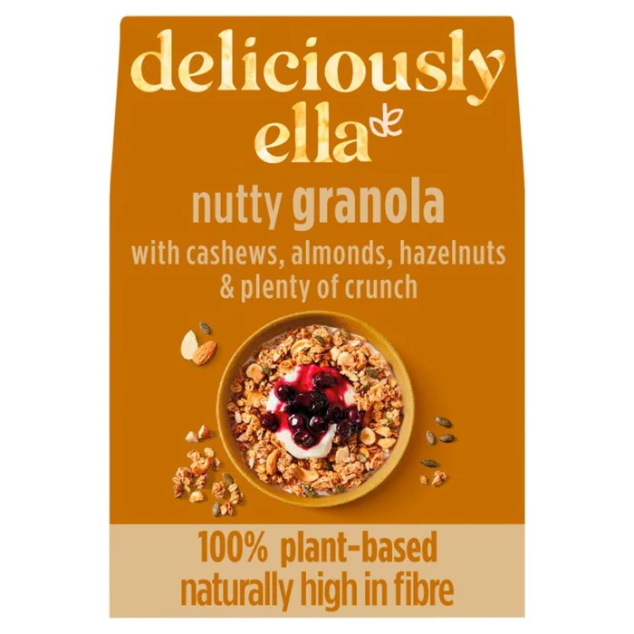 Our nuttiest granola, packed full crushed hazelnuts, cashews and almonds, and we stir through pumpkin and sunflower seeds for even more texture. We gently toss the mixture with maple syrup and orange juice for a little extra sweetness then, we bake in a small batches to make sure that every spoonful is perfectly crunchy – ready for you to enjoy at home. 100% plant-based, No preservatives or additives, naturally high in fiber, Natural source of protein, Gluten free, Vegan friendly. Suitable for Vegetarians.