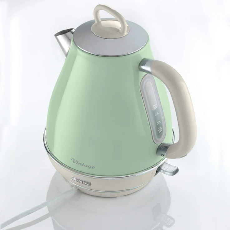 La bouilloire électrique Ariete Vintage 2869 est la bouilloire design qui décore la cuisine avec ses formes bon et ses couleurs pastel. La base pivotante à 360 ° permet un positionnement facile dans toutes les cuisines. La bouilloire électrique Vintage a une capacité de 1,7 litres et les 2000 watts de puissance vous permettent de porter l’eau à ébullition en quelques instants pour préparer rapidement des infusions, du thé et des tisanes. La poignée froide et les parois en acier empêchent les brûlures accidentelles ; la bouilloire s’allume via un simple bouton et s’éteint automatiquement lorsque le liquide bout (pour plus de sécurité, elle s’éteint même quand elle est vide). La bouilloire vintage est bon pour porter rapidement l’eau à ébullition, l’élément de cuisson principal pour une grande partie de la cuisine italienne, mais aussi pour faire des tisanes parfumées et de délicieuses infusions telles que le thé, la camomille, l’orge. Ariete crée des produits emblématiques et fonctionnels : la gamme Vintage allie le design italien et la facilité d’utilisation caractéristique d’Ariete, leader italien de la commercialisation d’articles pour le petit-déjeuner.