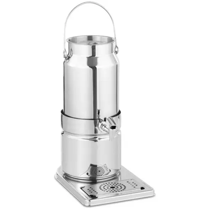 Que ce soit pour les céréales ou le café, le distributeur de lait APS ne devrait faire défaut sur aucun buffet et il trouve toujours preneur ! Son design en forme de pot à lait avec anse rend son contenu évident. Le récipient de 5 litres et la base du distributeur de lait en libre-service étant faits d’acier inoxydable brillant, il s’en dégage une impression d’hygiène et de propreté. Grâce à la position surélevée du pot à lait, il est possible d’actionner le robinet sans effort. La base du produit renferme un accumulateur de froid afin que le lait reste longtemps frais et savoureux.