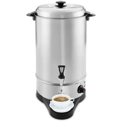 Le distributeur d’eau chaude RCWK 10A de Royal Catering est un appareil idéal pour préparer vos boissons chaudes de différentes sortes. En plus des boissons habituelles comme le thé et le café, le distributeur d’eau chaude sert également pour les boissons alcoolisées telles que le vin et la bière chaude. Cet appareil est donc aussi bien adapté pour l’hôtellerie et la restauration que pour les marchés de Noel, les foires et événements divers.