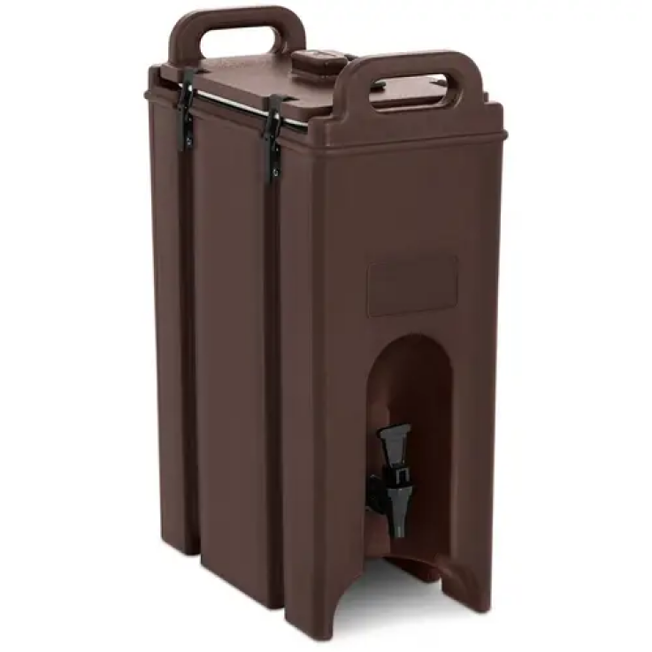 Ce distributeur de boissons présente un volume de 18 l. Grâce au polypropylène dont il se compose et aux grands fermoirs en plastique qui l’équipent, il conserve un volume élevé de liquide au chaud ou au froid de façon prolongée – soit jusqu’à 4 heures durant selon la température ambiante. Pour les boissons chaudes, le récipient est muni d’un évent de dépressurisation permettant à la vapeur de s’échapper en cas de besoin. Grâce à la conception bien pensée de cette caisse isotherme, il est possible d’en empiler plusieurs afin de faire des gains d’espace tout en ayant accès à leur contenu et en pouvant servir des boissons avec aise et sans dégâts.