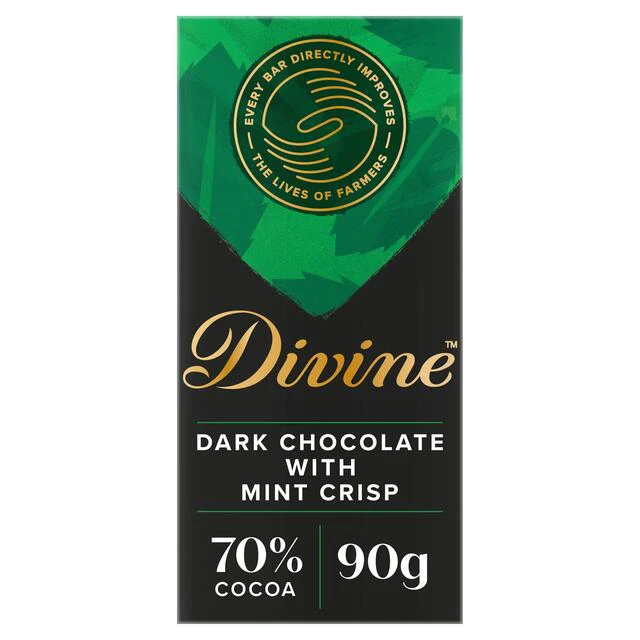 Divine 70% Dark Chocolate with Mint Crisp 90g