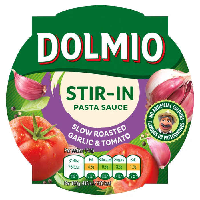 Dolmio® Stir-In Tomato and Roasted garlic sauce is a rich sauce with olive oil (2%) and roasted garlic. Serves 2, No artificial colours, flavours or preservatives, Suitable for vegetarians