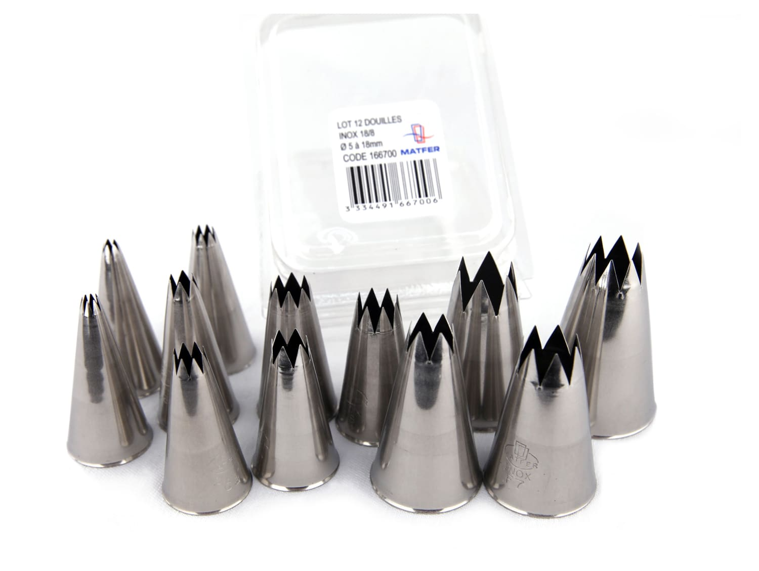 BoĂ®te de 12 douilles cannelĂ©es en acier inoxydable monobloc, sans bord roulĂ©. A8, B6, B8, C6, D6, D8, E6, E8, F6, F7 et F8. RĂ©pondent aux exigences de l’hygiène.