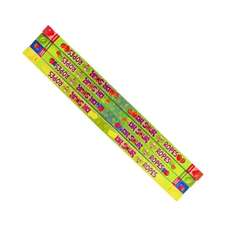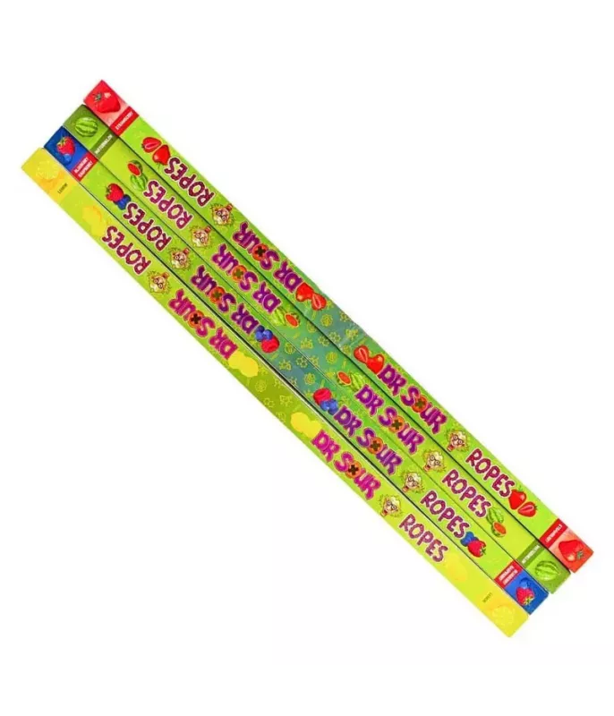 DR SOUR – Bâton de bonbon gélifié à mâcher en forme de paille de X cm et X gr de la marque Dr Sour – Vendu en gros conditionnement dans un présentoir de 48 pcs