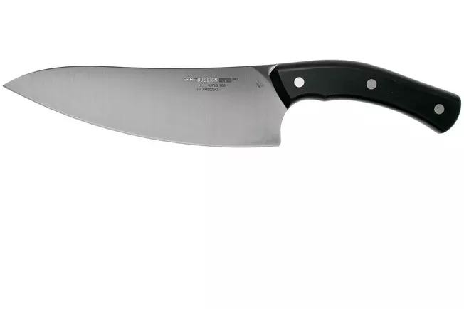 Ce couteau de chef de la ligne Arne de Due Cigni impressionne les amateurs de cuisine. La forme remarquable de la lame et le manche incurvé (pour éviter la fatigue) donnent à ce couteau un aspect unique. Pas étonnant étant donné que les couteaux de cette collection ont été conçus par le coutelier danois Jens Ansø. Comme c’est souvent le cas pour les designs Ansø, la perfection et la fonction sont essentielles ! Et vous pouvez dire quand vous regardez le couteau.