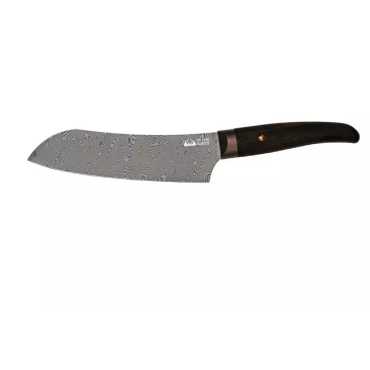 Le Due Cigni Coquus santoku est un couteau de cuisine élégant et remarquable. Le design, le damas et le manche en grenadille. Tout dans ce couteau est gracieux et luxueux. Un Santoku est la version japonaise du couteau du chef. Le couteau est parfait pour hacher les légumes, la viande, le poisson, l’oignon, l’ail et divers types d’herbes.
