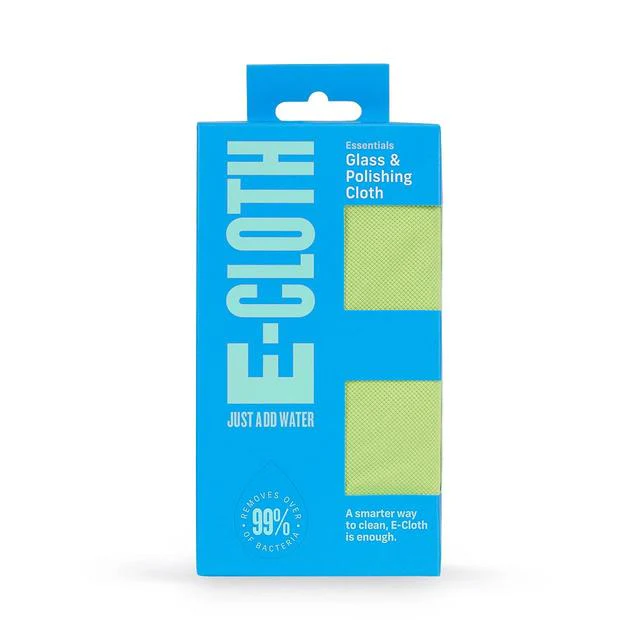 Use dry on a damp surface to remove light grease and dirt. Brings a perfect streak finish to glass and all shiny surfaces, using just water. How e-cloths work: e-cloths have 480,000 fibres per cm2. By combining e-cloth’s unique fibre technology with water they break up and hold grease, dirt and bacteria, which normal cloths are behind. Chemical-free healthy living, Removes over 99% of bacteria, For the perfect finish on windows and all shiny surfaces, Perfect cleaning with just water, Good Housekeeping Institute approved 2016