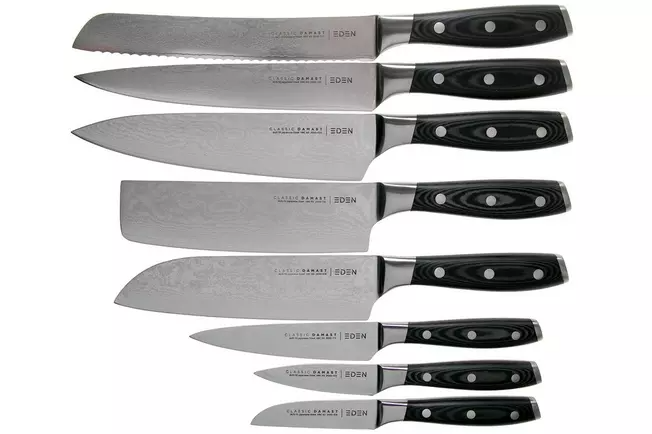 Cet ensemble de 8 couteaux Eden Classic Damast vous offre tous les couteaux de cuisine dont vous pourriez avoir besoin. C’est l’ensemble parfait qui vous aidera dans n’importe quelle tâche dans la cuisine.