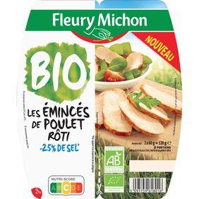 Emincés de poulet rôti bio -25% de sel FLEURY MICHON, 120g