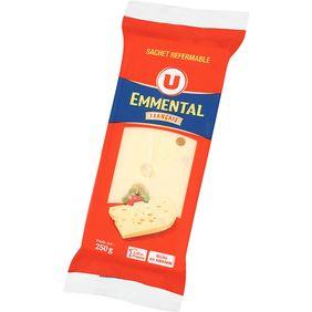 Emmental français. Fromage à pâte pressée cuite LAIT de vache pasteurisé (France), sel, ferments (dont LAIT), coagulant.