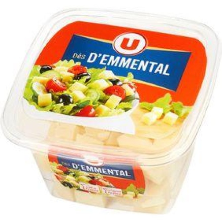 Dés d’emmental – Fromage à pâte pressée cutie LAIT de vache pasteurisé, sel, ferments (dont LAIT), enzymes coagulantes. l
