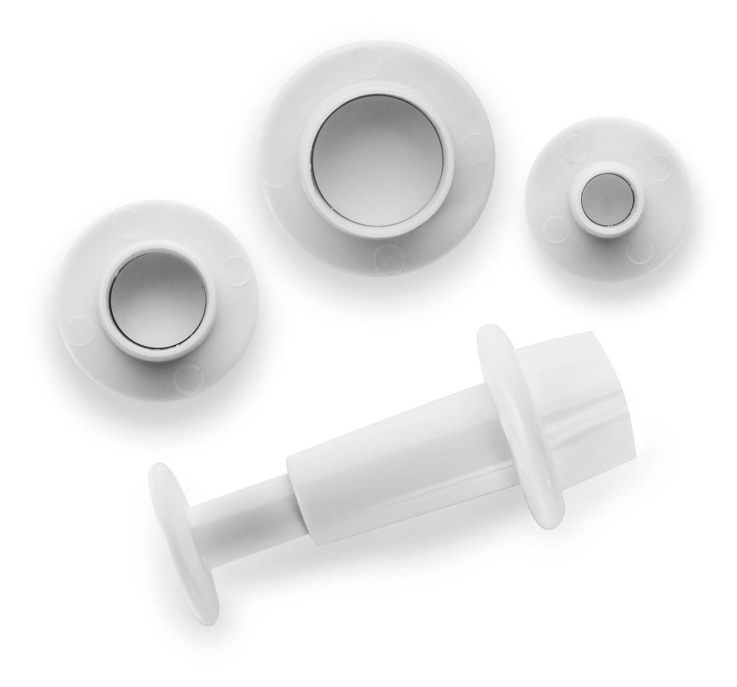 Cet ustensile de décoration très pratique permet dans un premier temps de découper et marquer la pâte en forme de rond et dans un second temps d’éjecter cette pâte découpée grâce au poussoir.