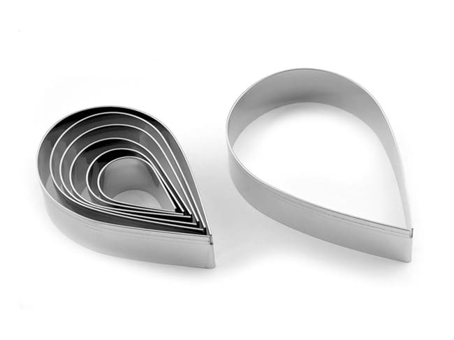Jeu de 7 emporte-pièces “goutte” en inox pour faciliter la découpe des pâtes, pain de mie, de la gélatine… Leur tranchant permet une découpe nette et précise. Faciles d’utilisation et d’entretien, ils procurent une prise en main ferme et agréable.