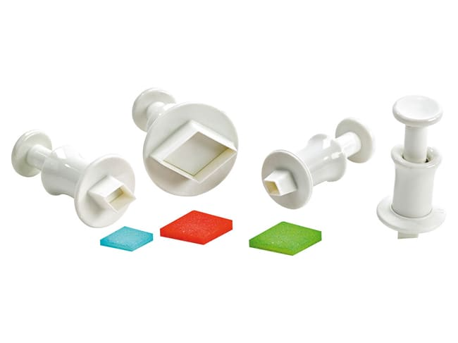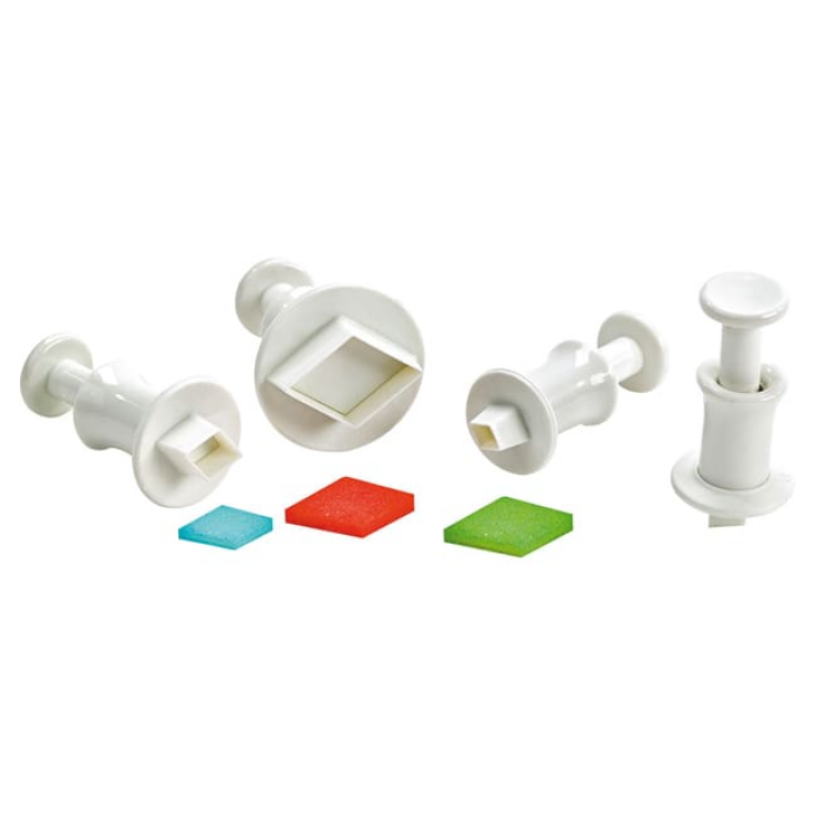 Élaborez de beaux losanges avec cet esemble de trois découpoirs à poussoir. Le poussoir permet l’extraction facile de la pâte découpée.