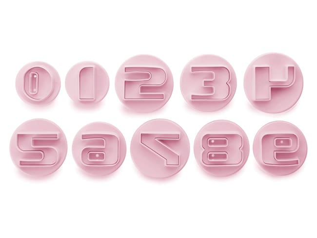 Set de 10 emporte-pièces avec poussoir représentant tous les chiffres.