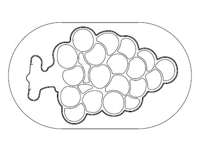 Ce découpoir permet de couper en quelques secondes 1 grappe de raisin avec une abaisse de “pâte morte” (recette spéciale fournie avec le découpoir). Les épis indépendants peuvent être déposés de différentes façons. La décoration des pains devient enfin possible sans y consacrer des heures de travail. Les pains sont valorisés.