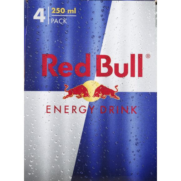 Red bull energy drink 4x250ml Pays de fabrication : FRANCE Boissons énergisante à base de taurine pour périodes d’activité. RED BULL OFF PREMISE 12 rue du Mail, 75002 Paris