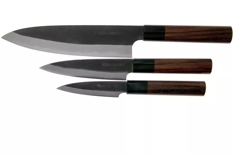 Ensemble de 3 couteaux de la série Eden Kanso Aogami. Les couteaux les plus tranchants de notre gamme ! Lame fine en acier au carbone très résistant (Aogami # 2) pour des propriétés de coupe parfaites.