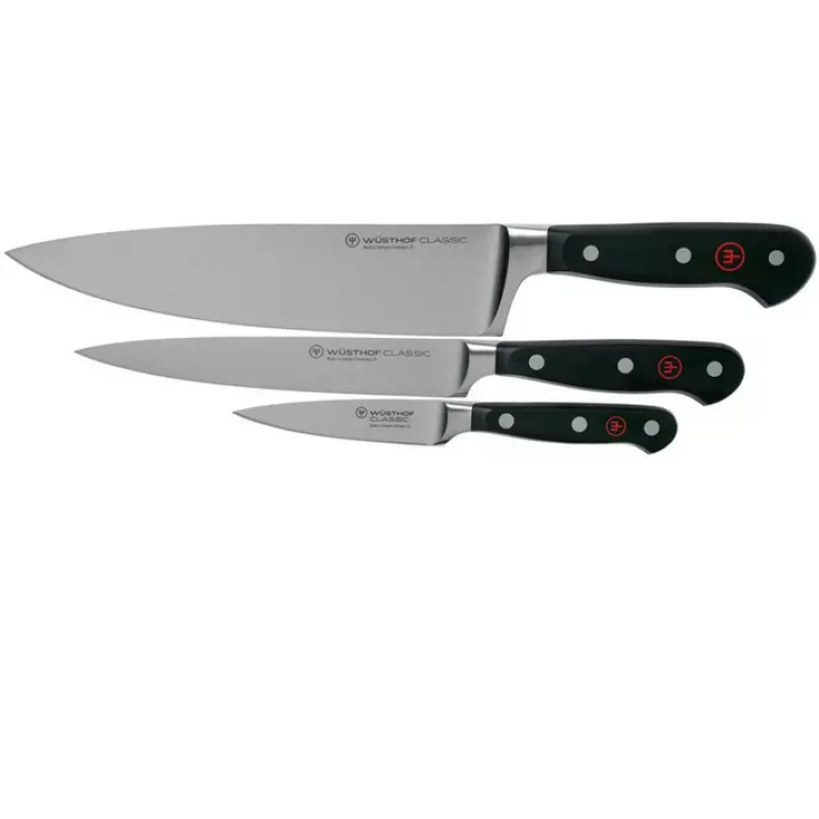 Cet ensemble de couteaux Wüsthof Classic 3 pièces propose trois couteaux de cuisine polyvalents pour les grandes, moyennes et petites tâches dans la cuisine.