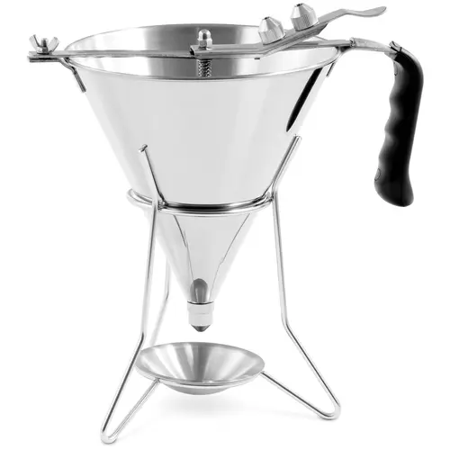 Entonnoir à piston – 1,8 l – Acier inoxydable – 3 douilles – Support avec coupelle antigoutte