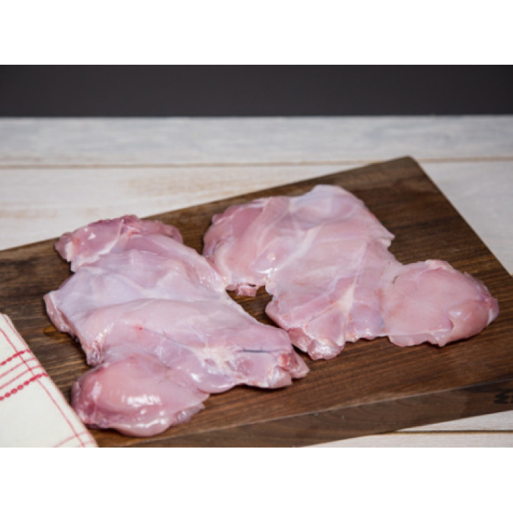 Les lapins sont élevés sur la ferme pendant 90 jours minimum, puis abattus sur la ferme, ce qui génère beaucoup moins de stress pour l’animal, et donc se ressent sur la qualité de sa viande. Aucun antibiotique n’est utilisé en préventif, ni dans leur alimentation, ou dans l’eau de boisson.Le résultat? Une viande mâture, car nos animaux sont élevés longtemps, fine, goûteuse, et subtilement relevée! Pour une cuisson optimale de vos escalopes, utilisez la plancha ou le barbecue. Mijotées à la poêle, elles seront délicieuses aussi, après avoir été saisies à feu vif 30 min par face. Ce produit est frais, il peut donc être congelé. Le poids peut varier de plus ou moins 5%, veuillez nous en excuser!