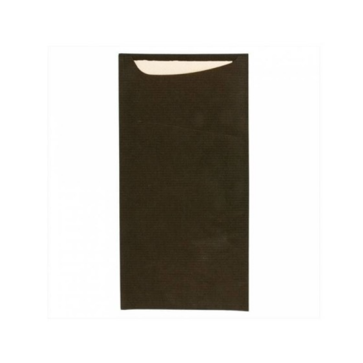 Étui à couverts kraft noir avec serviette blanche 22,5 x 11,5 cm – par 100