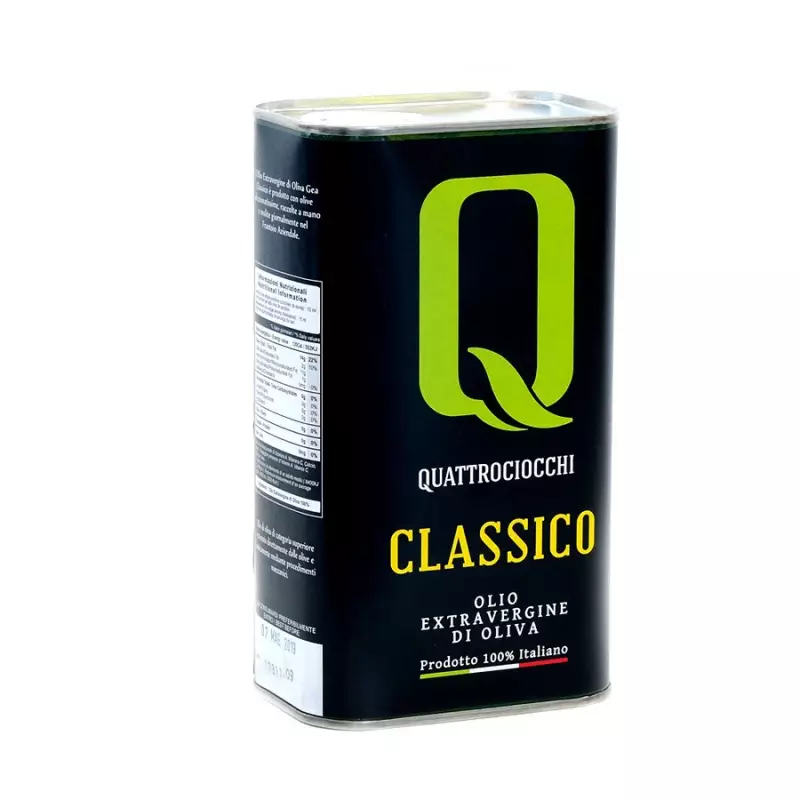 The Extra Virgin Olive Oil Classico del Frantoio Quattrociocchi in a 1 litre tin is an excellence of the Italian olive oil scene from the Quattrociocchi farm in Alatri. It is obtained mainly from the Moraiolo, Leccino and Itrana olive varieties, cultivated and harvested by hand and then pressed on the same day in the company’s mill to ensure maximum freshness of the final product. Quattrociocchi Classico oil is renowned for its quality and balanced taste, making it a product appreciated by the most refined palates. With the practical 1 litre tin format, it will be even more convenient to use it every day on your favourite dishes.