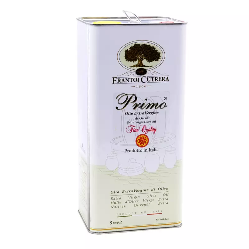 The Extra Virgin Olive Oil Primo Fine Quality Frantoi Cutrera available also in the maxi 5 litre tin, perfect for those who wish to have an abundant supply of excellence in their kitchen. This oil, characterised by its bright green and veiled colour, is obtained by cold extraction, mainly from the prized Tonda Iblea olive variety. The 5 litre tin guarantees convenience without sacrificing superior quality.