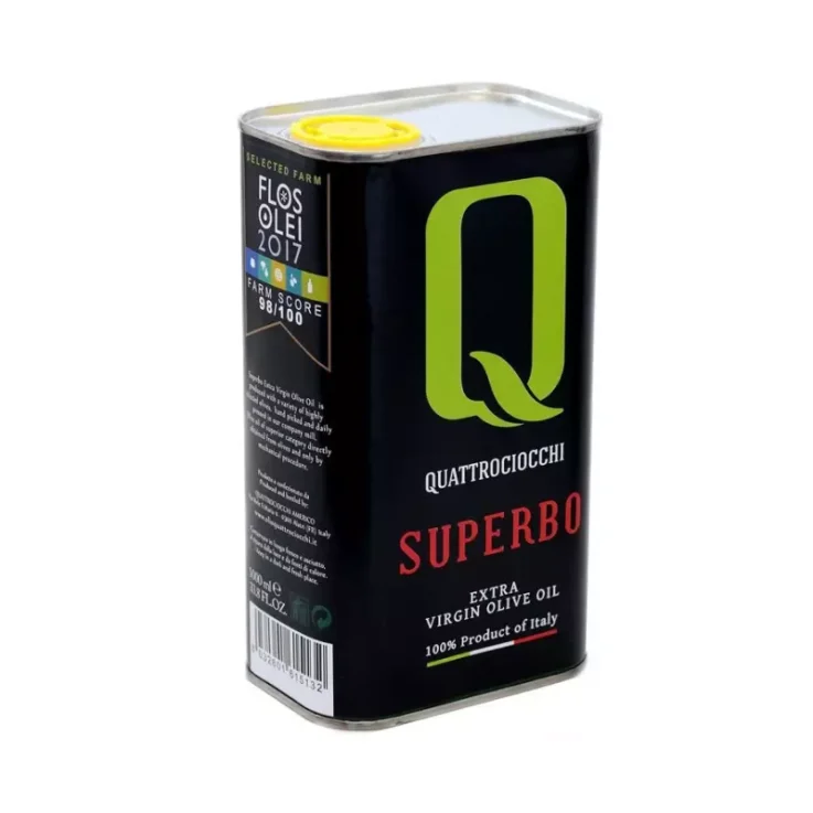 Superbo Quattrociocchi Extra Virgin Olive Oil in a 1 litre tin is a high quality extra virgin olive oil produced by the Quattrociocchi oil mill in Alatri. It is obtained from the cold pressing of olives mainly of the Moraiolo variety, which give life to an oil with a strong and enveloping taste. Ideal raw on many Mediterranean dishes. Try it in the practical 1 litre tin that protects it from light to guarantee maximum freshness down to the last drop.